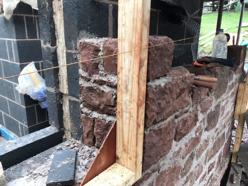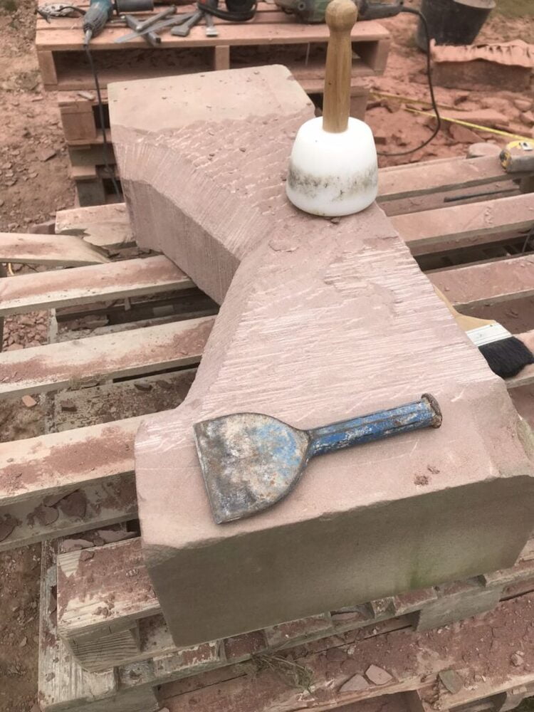 We were commissioned to reinstate a folly keep in red sandstone. The process complete with lancet windows, a Romanesque arch, narrow spiral stairs, thick red sandstone rubble, squared and brought to course imitated as closely as possible the process of the early Castle builders. A wonderful project and a legacy to last the ages.