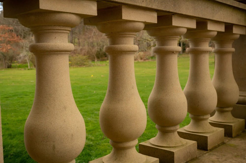 A balustrade is a row of small columns topped by a rail, and interestingly the term is derived from the form’s vertical vase-like posts, which are called balusters. The term was coined in 17th century Italy for the item’s resemblance to blossoming pomegranate flowers (which are ‘balaustra’ in Italian).