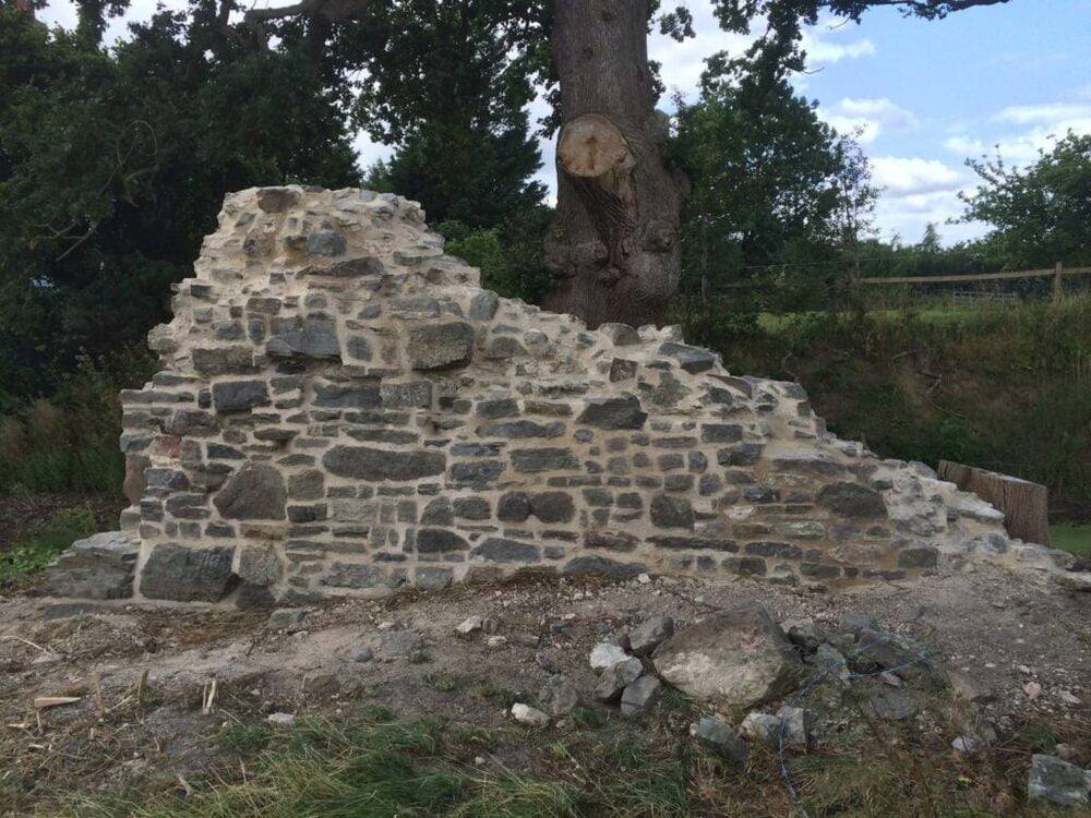 In 2016 McMillan & Holder were commissioned to conserve, preserve and consolidate the moated site. It is considered to be part of the manor of Leigh, probably constructed in the early 14th century by Robert Corbet, who by 1324 had become the local Member of Parliament. The Corbets of Leigh held the manor until 1748. By 1667-68 the manor house was described as ‘lately burnt, destroyed or demolished’, possibly the result of damage in the Civil War. The adjacent farmhouse at Leigh Hall, constructed in the late 17th century, was built to replace the former manor house. It is a Listed Building Grade II and not included in the scheduling.