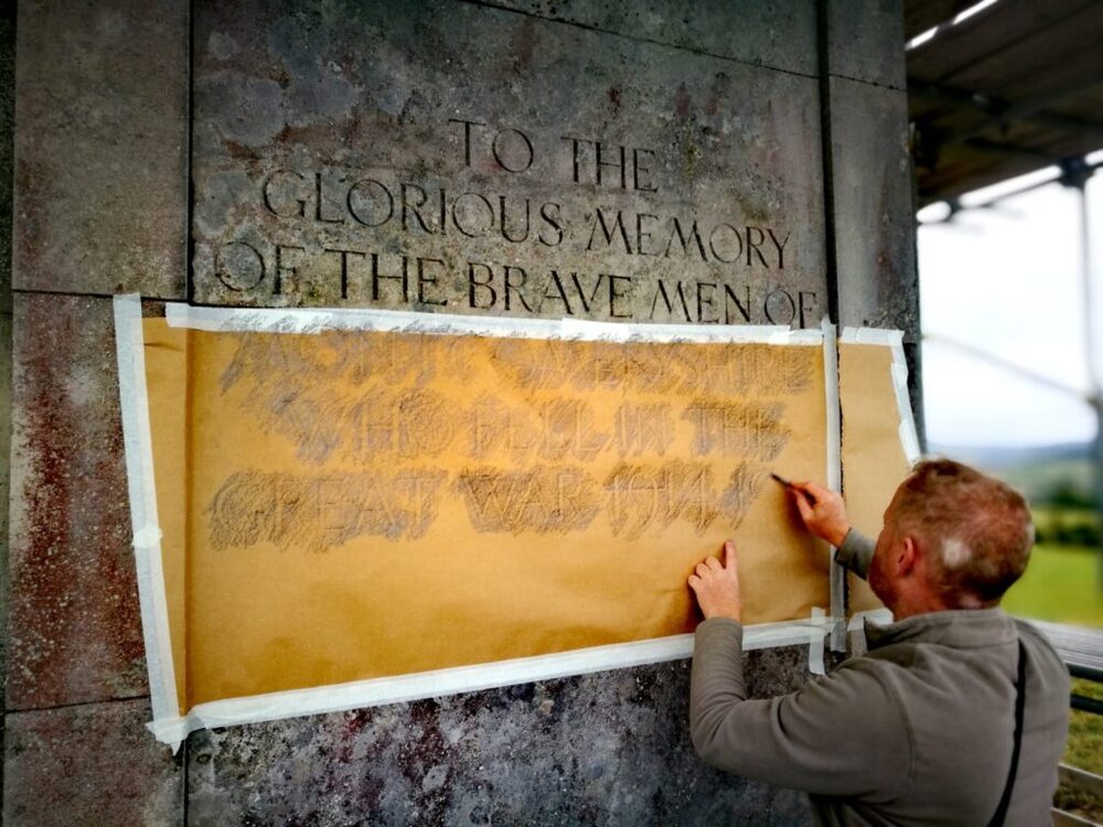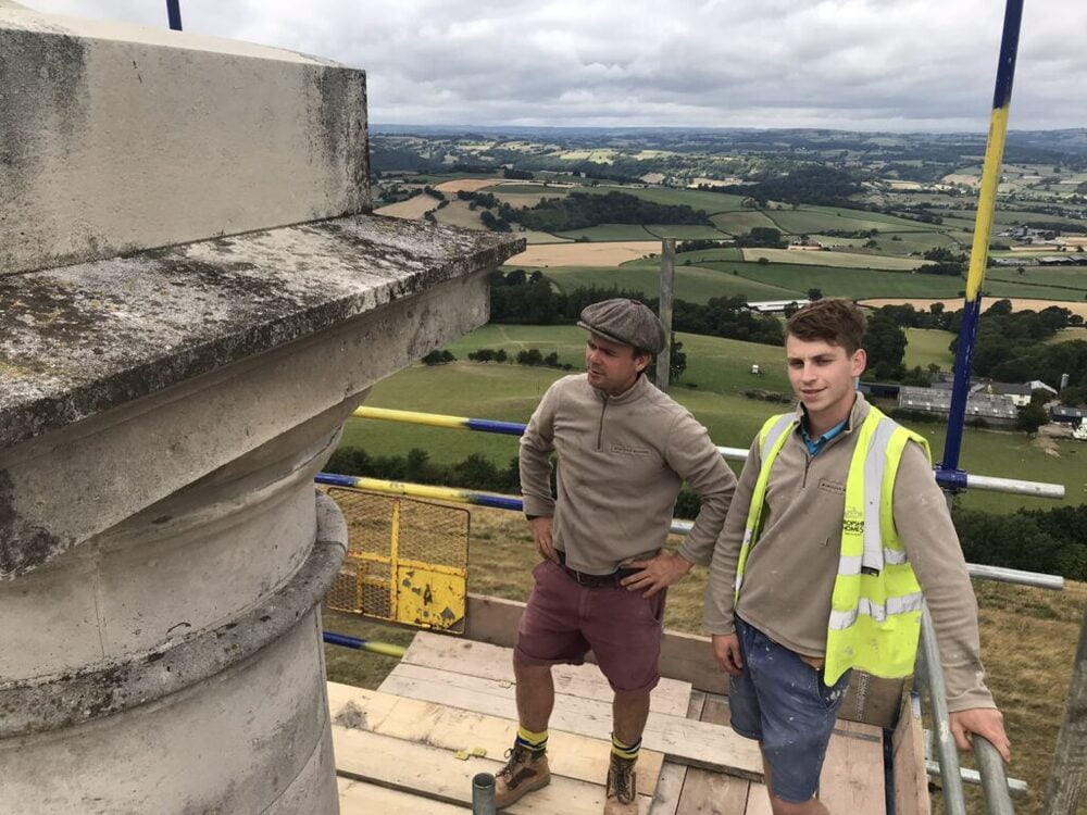 In 2018 McMillan & Holder were commissioned to undertake considerable repairs to the monument. Including the replacement of large curved ashlar blocks supporting the structure in Portland limestone. Templating and recarving the letters to the Glorious Dead. It was an honour to be involved and a spectacular view from the top. The scaffolders groans carrying the scaffold up the hill is a memory we will also cherish.