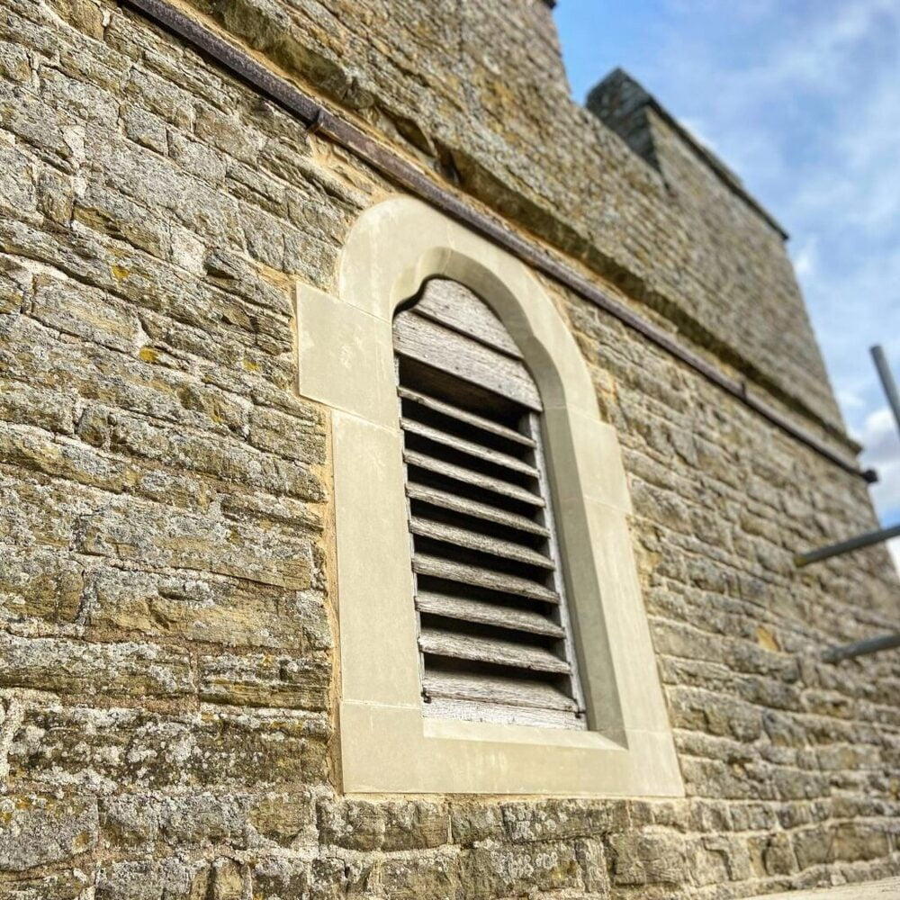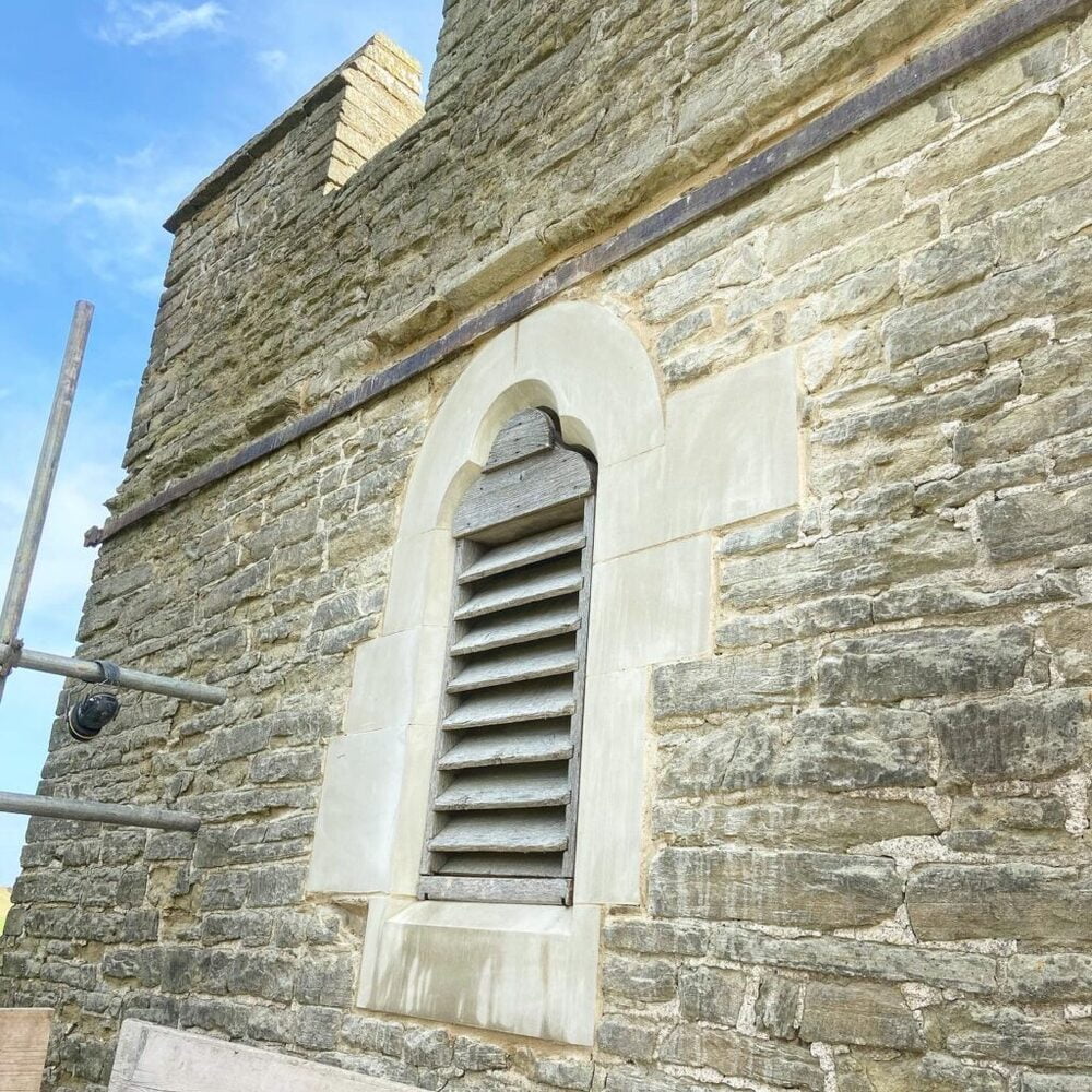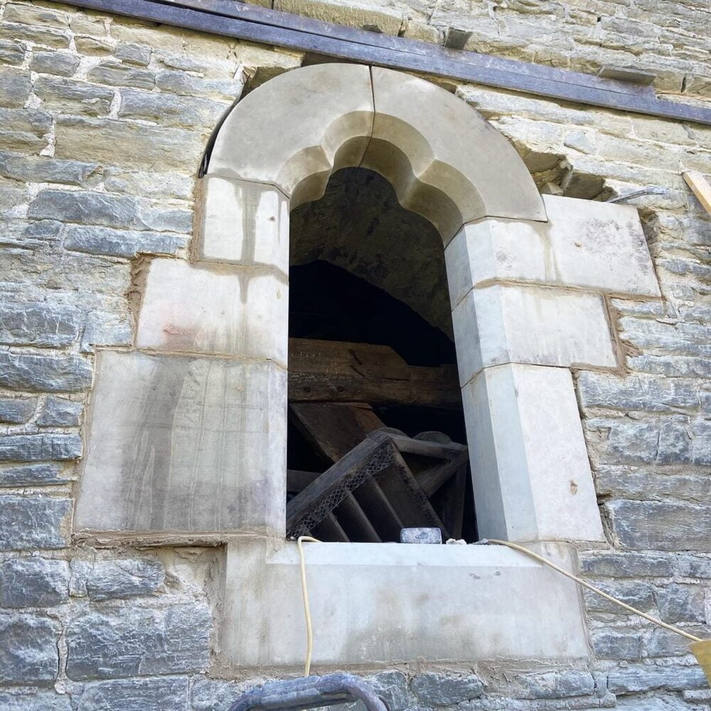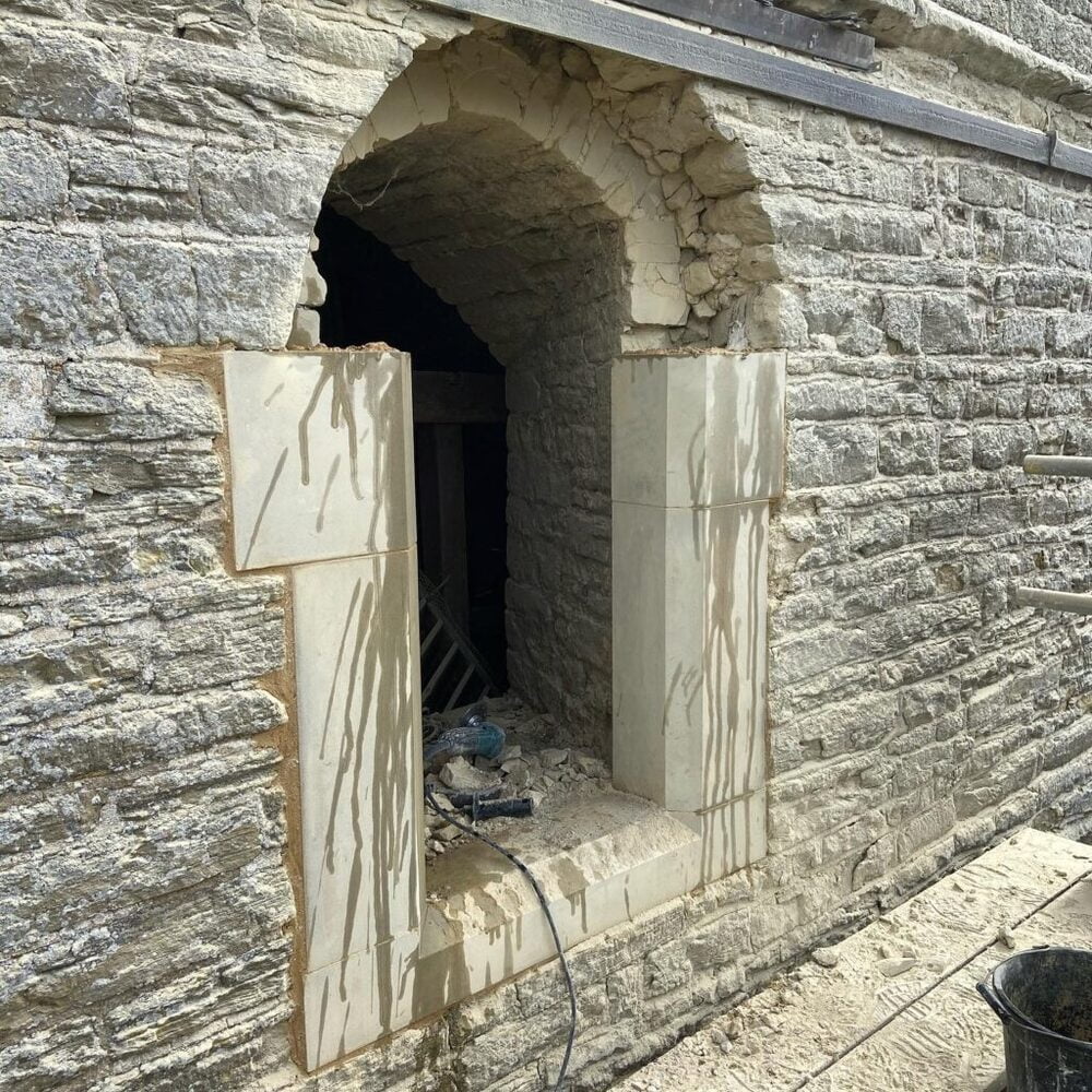 Twice shouldered arched voussoirs and jambs were all replaced in a very dense Woodkirk sandstone to last many hundreds more years.